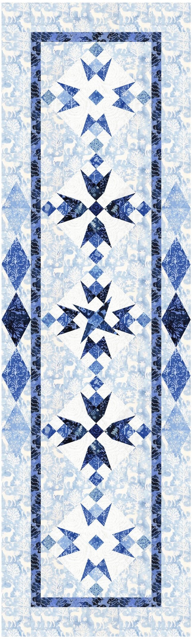 You are welcome to use fabrics from your own stash, or you can make things easy and purchase a fabric kit featuring the beautiful Frosted Wishes fabric line by Island Batik. Kits will be available for both these size projects from Quilting by the River. More details will be available once the fabric arrives.