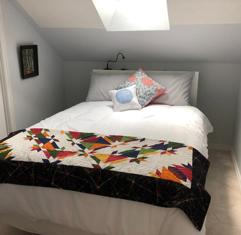 "It was a pleasure to visit The Loft! Such a bright airy spotlessly clean and well-outfitted artistic space. The beds were very comfortable, and the kitchen had everything we needed! Loved the power and charging stations! Very convenient! It was nice to spend some quilting time in a great space, with good friends." - Susan Huot