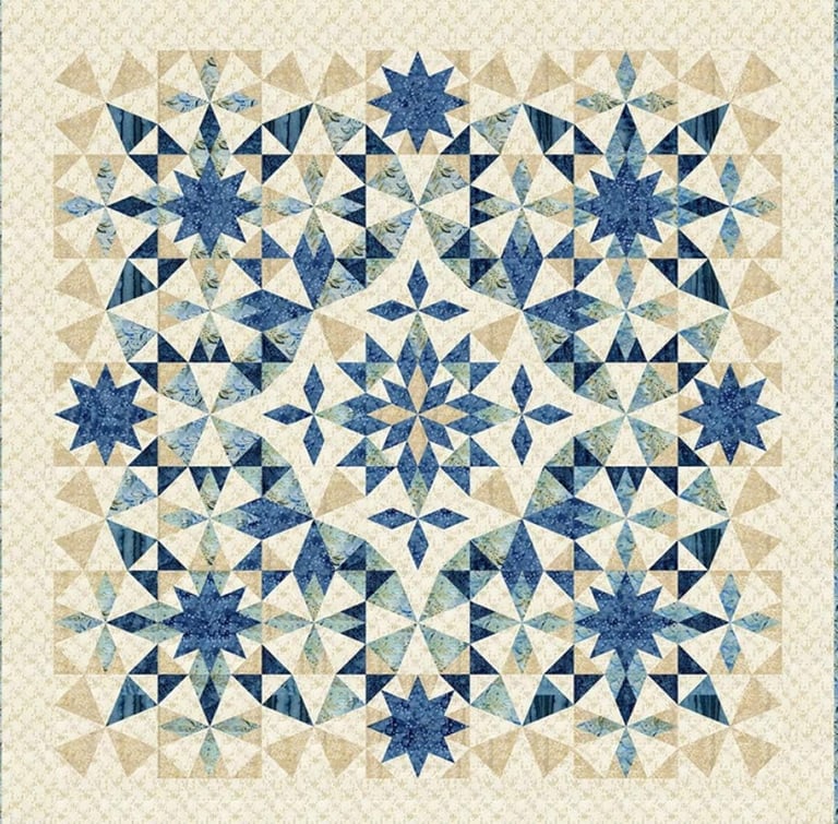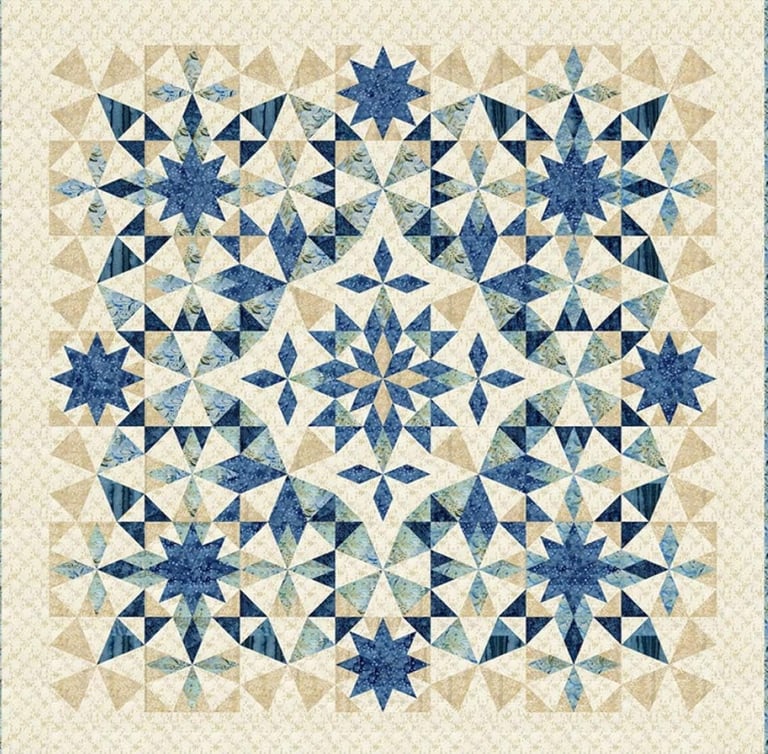 The beautiful Alaska quilt, originally designed by Edyt a Sitar of Laundry Basket Quilts, quickly took the quilting world by storm with its striking star blocks and dramatic design. The original pattern uses templates or precut pieces, which can make construction challenging for many quilters.